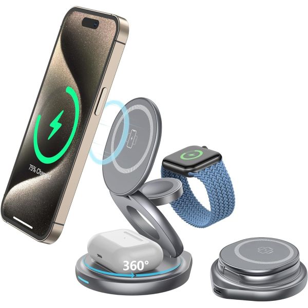 Type : Wireless Charger, 3 in 1 Wireless Charging Station, Magnetic, Desktop Charger, Fast Charger, Phone stand